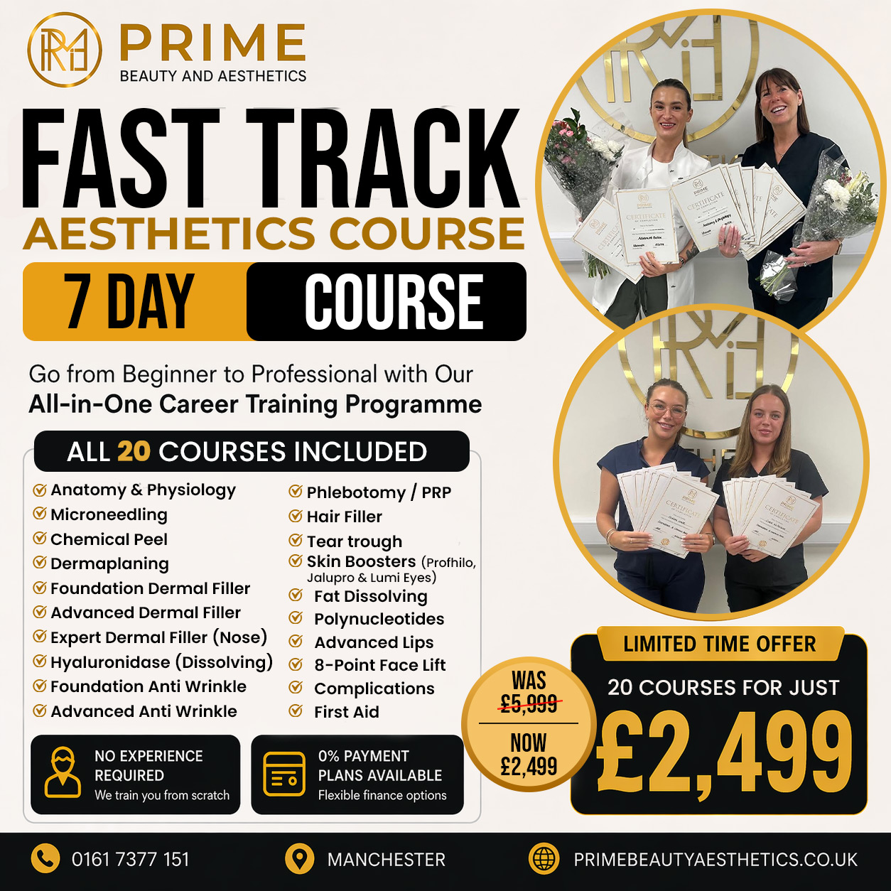 was £3749 now £2299 What’s Included in the Course: Dermaplaning Chemical Peel Microneedling Foundation Dermal Filler Advanced Dermal Filler Expert Dermal Filler (Nose) Hyaluronidase (Dissolving)…