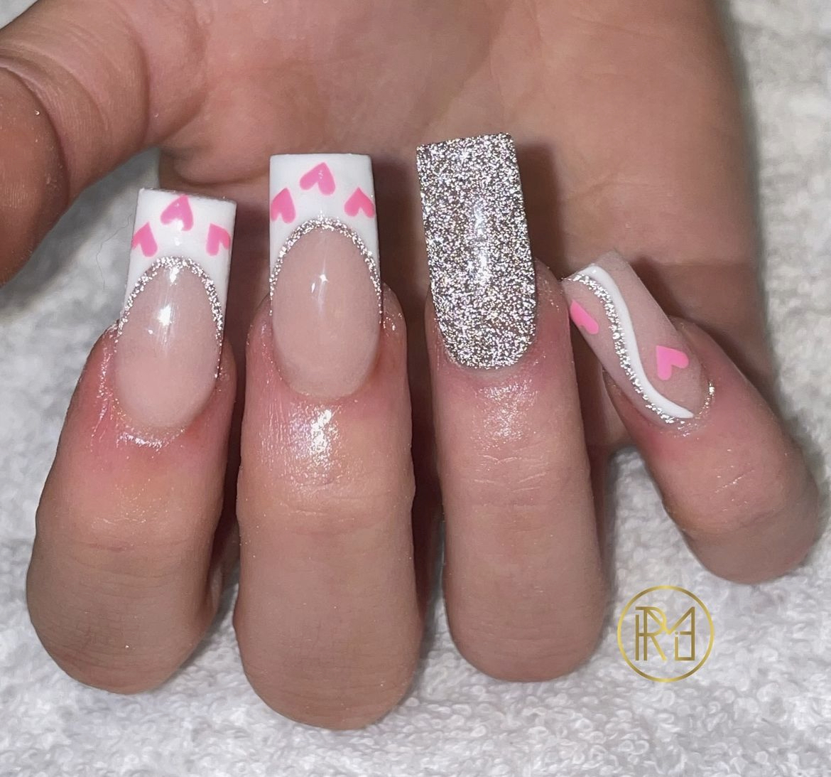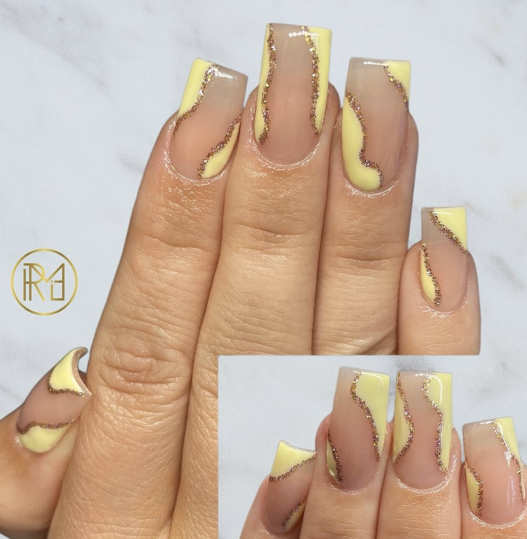 Acrylic nails are artificial nail extensions composed of acrylic plastic that are applied over your natural nails. This product can be done to lengthen the nail. They are ideal for people who want the look of long nails but struggle to develop their own. Acrylics are great for adding length and strength to your nails, but they may also offer a wider, more evenly formed canvas for individuals who enjoy detailed manicure designs. Acrylic is a combination of a liquid monomer and a powder polymer that, when combined, forms a hard protective covering this can be applied to the natural nail or with a use of extension. The treatment is applied by trimming the cuticle and pushing it back, preparing the natural nail for this enhancement, adding tips and blending them into the natural nail, adding acrylic on top of this, whether it be in the shape of a design or plain, and then filing smooth and applying a top coat.