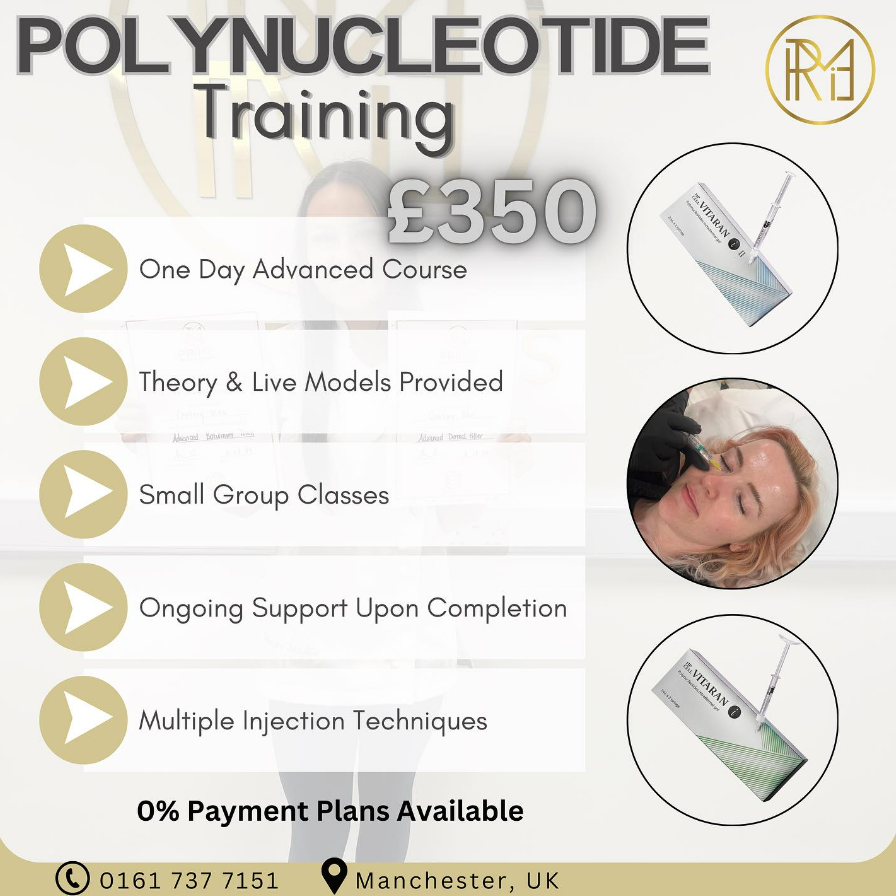 We are thrilled to introduce our latest training course! Discover the power of Polynucleotides, the injectable bio-stimulators crafted from purified DNA fragments, in our upcoming training sessions.